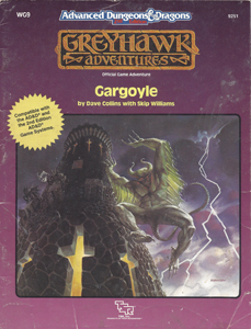 Gargoyle is an adventure set in the world of Greyhawk, the longest running of TSR's game worlds for the Advanced Dungeons & Dragons game. A pair of gargoyles wake up on morning to find their wings missing, and contact the players to help recover them. A great many AD&D players have been asking for low-level adventures suitable for beginners, and Gargoyle is the first of several planned for this year. Designed for levels 2 to 4, this adventure can be enjoyed by novices and experienced players alike.Ruins of the White Watch Centuries ago the White Watch defended the land. Then it fell and it's location was lost... until now. Who knows what treasures could be found in its depths. An adventure for a party of 6, of levels 5 to 8.
